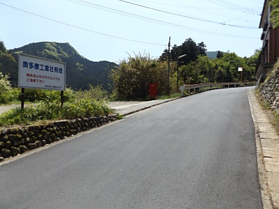 | 「奥多摩工業社有地 関係者以外の方の立入りはご遠慮ください」と書かれた看板がある。 | |