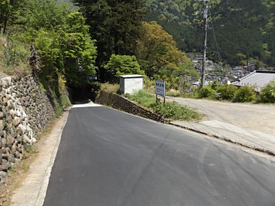 | 国道411号との合流点(日原街道入口交差点)手前で、ラーメン屋脇の急な階段を上ると・・・ | |