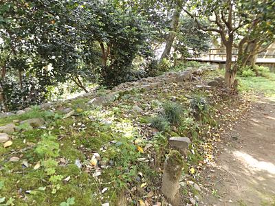 | 15:44 崖っぷちに石垣とわずかな盛り上がり。 |
