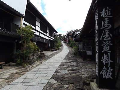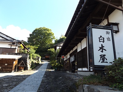 県道7号との交差点に戻り、 今度こそ宿場町へ。 なお、馬籠宿は江戸時代、明治、大正と 何度も大火に見舞われており、 江戸時代の遺構はほとんど失われている。 |