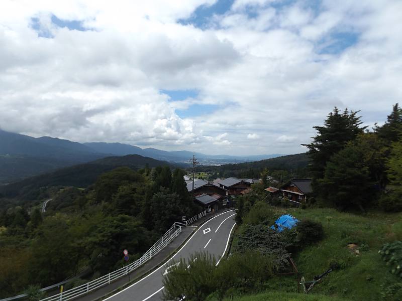 県道7号との交点(上入口)が 遠くに見えてきたところで雨が降ってきた。 |
