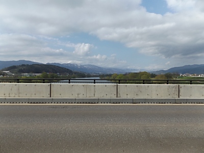 飯山城跡を後にすると、おすすめ観光コースのお寺巡りなどには目もくれず、千曲川に架かる国道403号の中央橋を渡る。 |